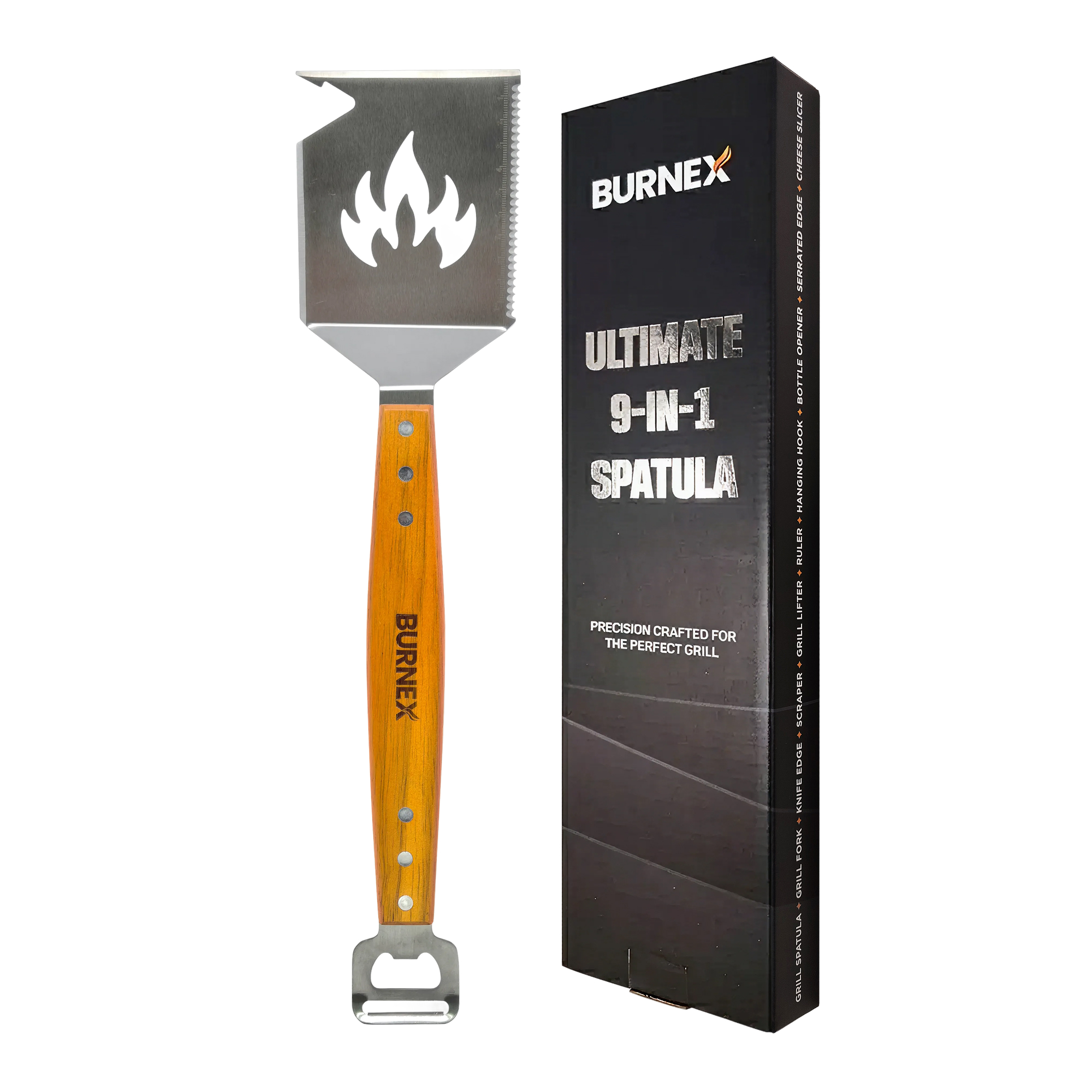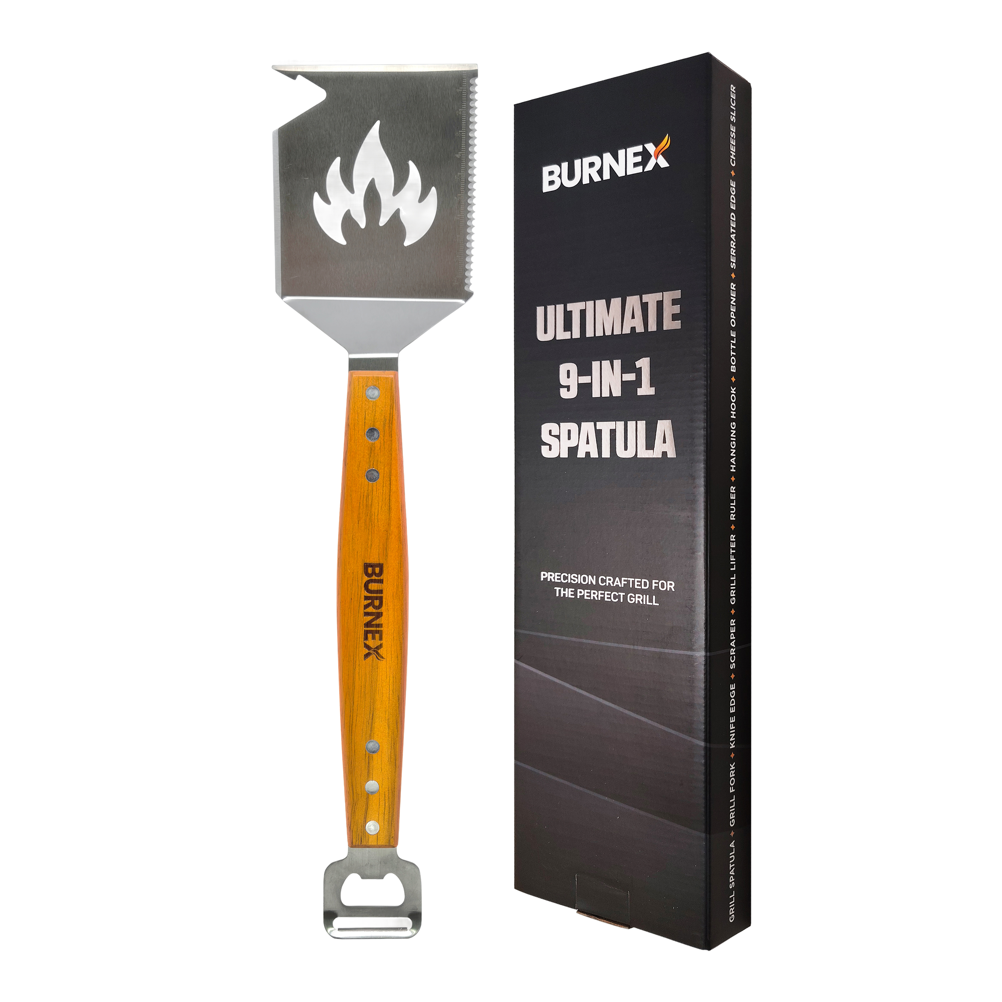 The 9-in-1 spatula combines essential grilling functions into one expertly crafted tool, eliminating the clutter of multiple utensils. We've built our reputation on products that become go-to essentials, not drawer fillers.